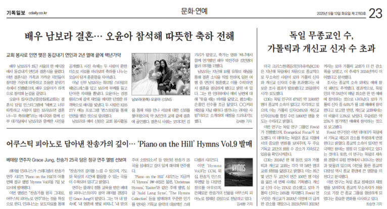 [기사] 어쿠스틱 피아노로 담아낸 찬송가의 깊이… ‘Piano on the Hill’ Hymns Vol.9 발매(기독일보)